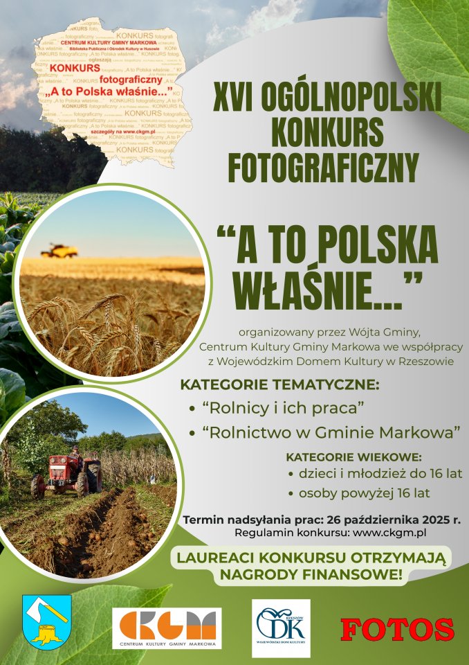 Wójt Gminy, Centrum Kultury Gminy Markowa wraz z Wojewódzkim Domem Kultury w Rzeszowie serdecznie zapraszają do udziału w XVI Ogólnopolskim Konkursie Fotograficznym "A to Polska właśnie..."
